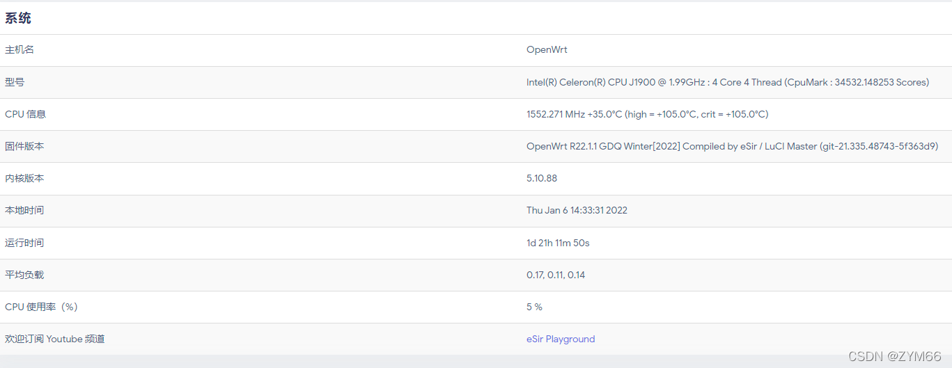 系统设置:进去的时候需要加载一段时间,加载完成后。这时候把软路由上的网口与自己电脑的网口相连,在浏览器中输192.168.5.1每个openwrt版本的这个ip地址都不一定相同,esir版的网址是这个,也可以自行更改(因为对小白影响不大就不多赘述了)。