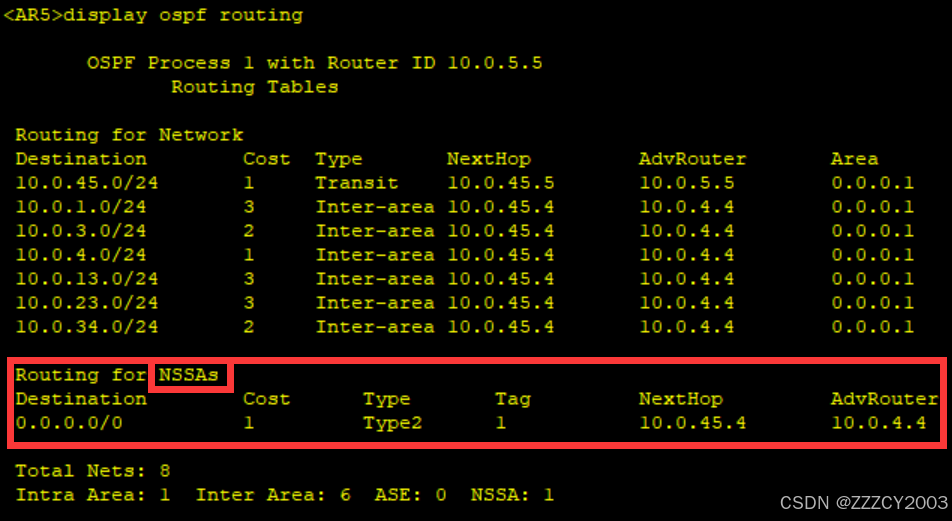 [AR5-ospf-1-area-0.0.0.1]nssa
