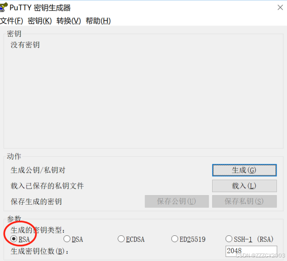 在远程维护终端运行 puttygen.exe。用于生成公用密钥、私用密钥两个文件,供后续使用。 如图所示,选取“RSA”,点击“生成”,进入密钥生成状态,此时只要将鼠标在空白处进行 移动,就可以看到密钥不断的生成