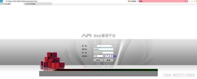 (5)远程维护终端上使用浏览器打开URL https://192.168.0.1:8443 , 即可跳转至Web管理平台
