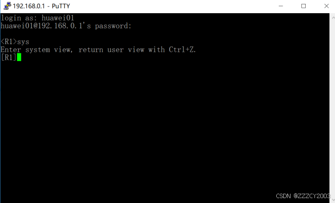 [R1-GigabitEthernet0/0/0]ip address 192.168.0.1 24