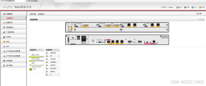 输入正确的用户名密码后,即可成功登录Web网管,如图3所示。此时在路由器R1上执行[display http users]可查看登录 Web 网管的在线用户信息