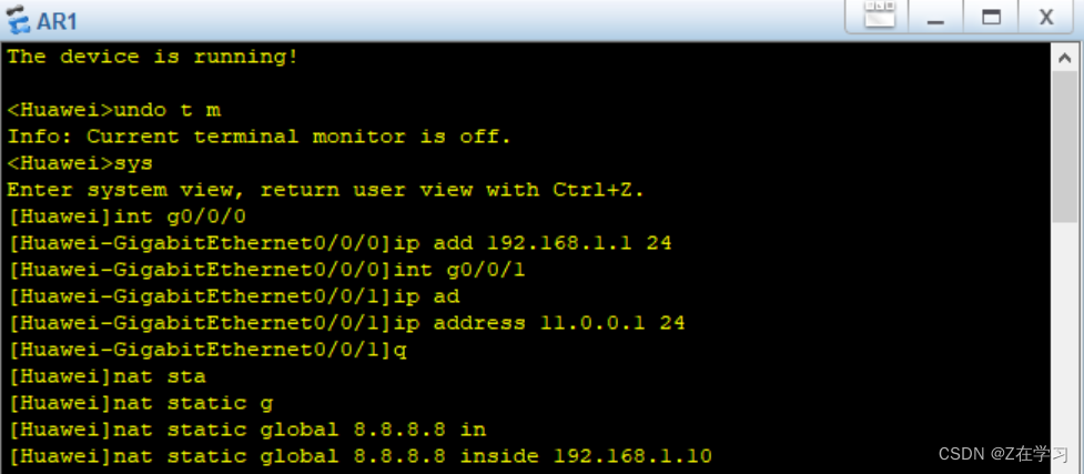 1.全局模式下设置静态NAT: