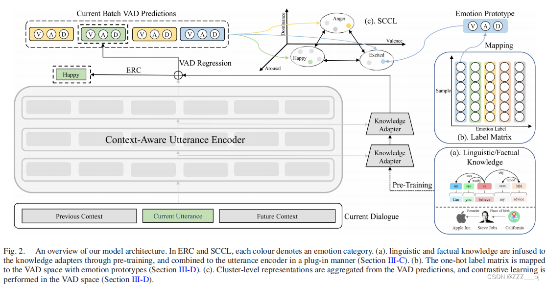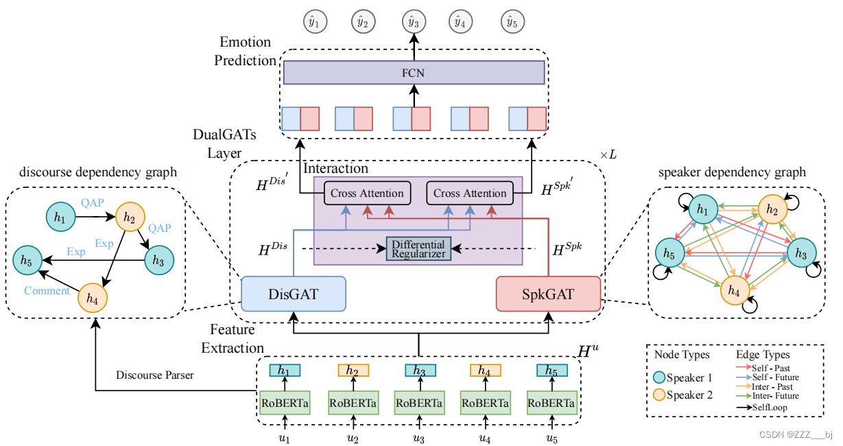 近年来,多模态情绪识别(MERC)的研究主要集中在多模态融合和说话者感知上下文建模上。除了上下文信息外,人格特征也会影响情绪感知。然而,目前的MERC方法只考虑说话者的人格影响,忽略了说话者与收听者的互动模式。此外,情绪转移(ES)的瓶颈问题,即同一说话者的连续话语表现出不同的情绪,在MERC中一直被忽视。早期的ES研究未能区分不同的转移模式,只是简单地介绍了转移是否作为知识发生在MERC模型中,而没有考虑这两个任务的互补性。在此基础上,我们提出了一个注入人物人格的跨任务图网络**(PCGNet)。