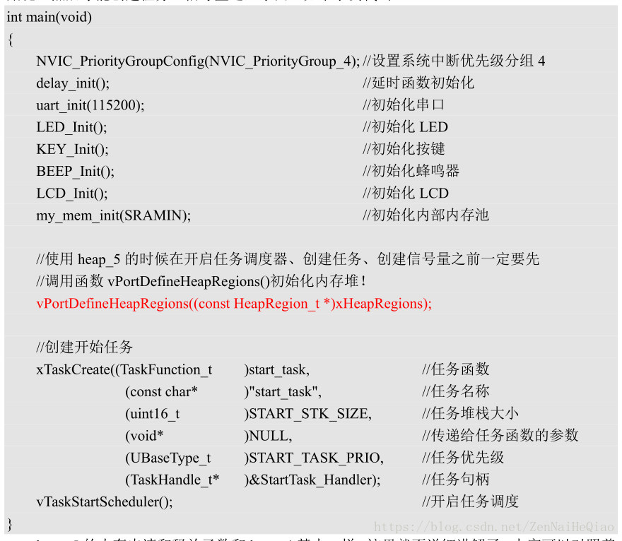 heap_5.c和heap_4.c实现方法比较相似。在调用API之前需要想调用 vPortDefineHeapRegions()来初始化内存堆。