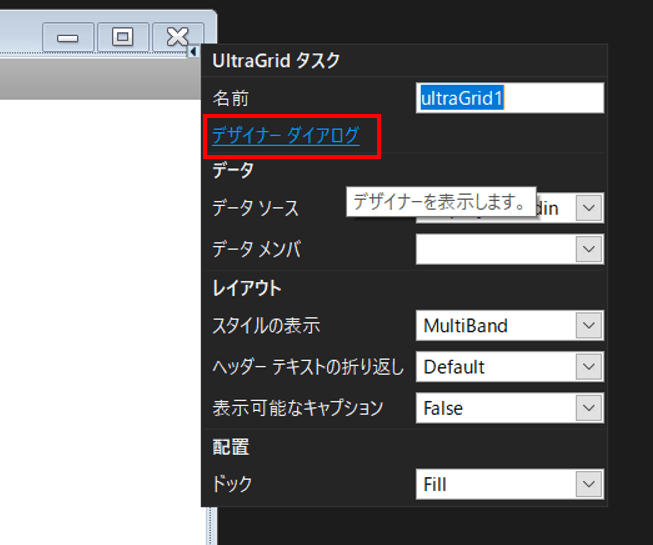 通过单击设计器上智能标记中显示的“设计器对话框”来显示行布局功能。