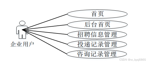 本系统用户权限分为3类,包括求职用户、企业用户和管理员,通过调查分析,系统主要的功能需求如下:
