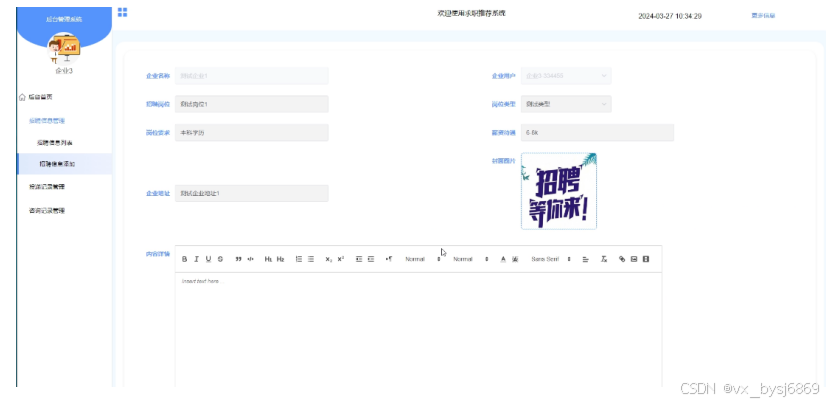 - 招聘信息管理:管理员可以查看所有招聘的详情信息,进行增删改查操作。