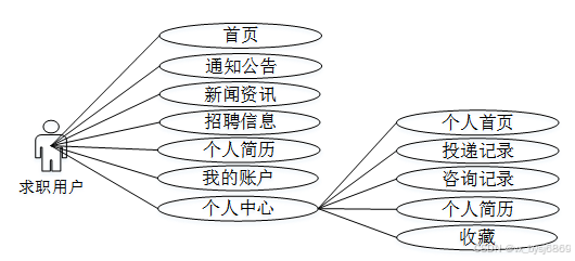 图2-1 求职用户角色的用例展示。