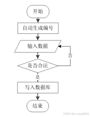 用户成功登入系统后就能够实现增加数据的操作,增加数据的编号是特定的,系统生成,用户不能随意填写,除了编号以外,其他增加信息用户自己填写,填写后的信息经过系统验证,验证合法通过就显示增加数据成功了,相反的话,就没有增加成功,图2-1显示的就是在增加数据时的流程。