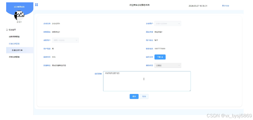 - 投递记录管理:企业用户可以查看和管理求职用户投递简历的信息,并对简历进行回复。