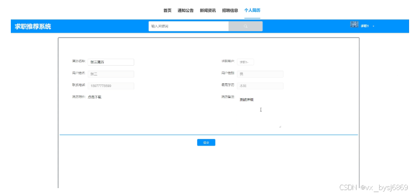 - 个人简历:该模块方便求职用户管理和添加自己的个人简历信息。