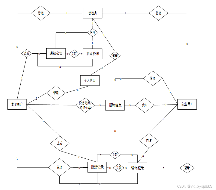 - 注册登录:求职用户必须要注册成为系统用户,才可以在查看招聘信息的同时进行简历投递,和向企业用户进行咨询。