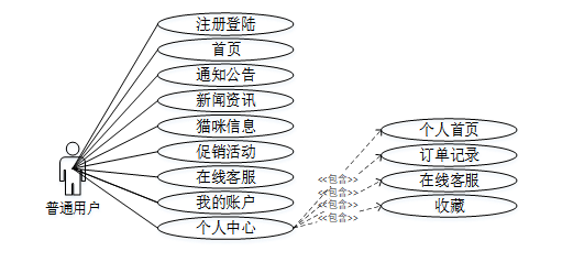 图 3-1宠物猫售卖系统普通用户角色用例图