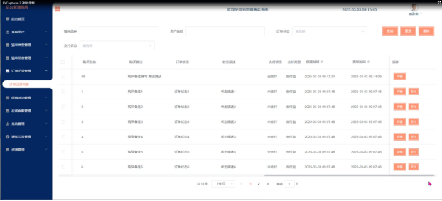 - 订单记录管理:管理员可以全面跟踪订单状态,包括查询订单信息,重置订单状态,删除无效订单,添加新订单,查看订单详情,以及处理支付事宜,提升订单处理效率和用户体验。