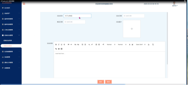 - 促销活动管理:管理员能够自主策划和执行促销活动,包括查询现有活动详情,重置活动设置,删除过期活动,添加新活动,查看活动效果及用户评论,以提升平台活跃度和用户参与度。