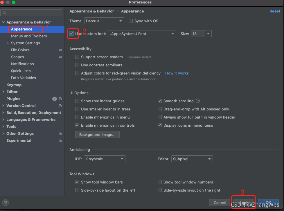 解决:在setting设置中找到如下内容,勾选+Apply就好了