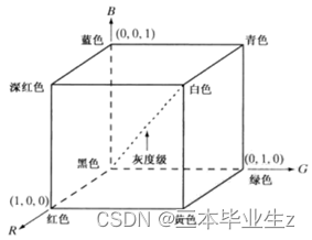在图像处理中,RGB色彩空间模型是最基本的,它是一种基于笛卡尔坐标系的一种色彩表示模型。在RGB色彩空间模型中,使用红(R)、绿(G)、蓝(B)三个颜色分量进行线性叠加来表示各种颜色,每个分量的范围是0%~100%。物理上,每种颜色都有自己的光谱,但通过R、G、B混合可以形成各种色光。