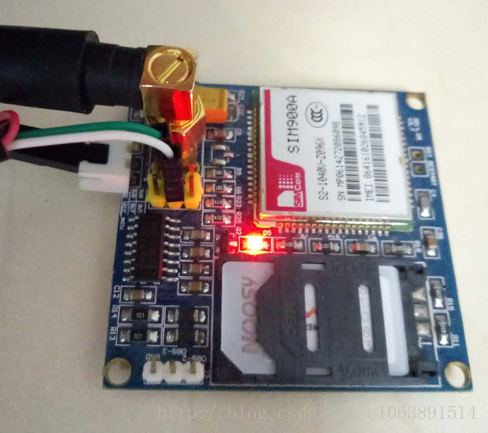4、用别的手机发送一条字符串到的模块上,模块接收到短信后,会提示如: +CMTI:"SM",16,表明收到了新的短信,存放在 SIM 卡位置16。