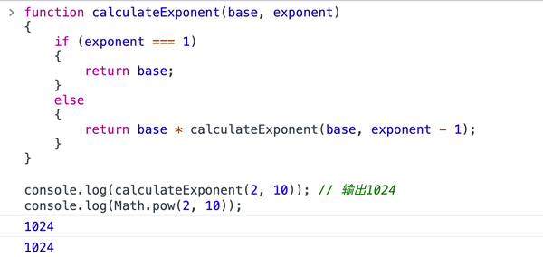 console.log(calculateExponent(2, 10)); // 输出1024