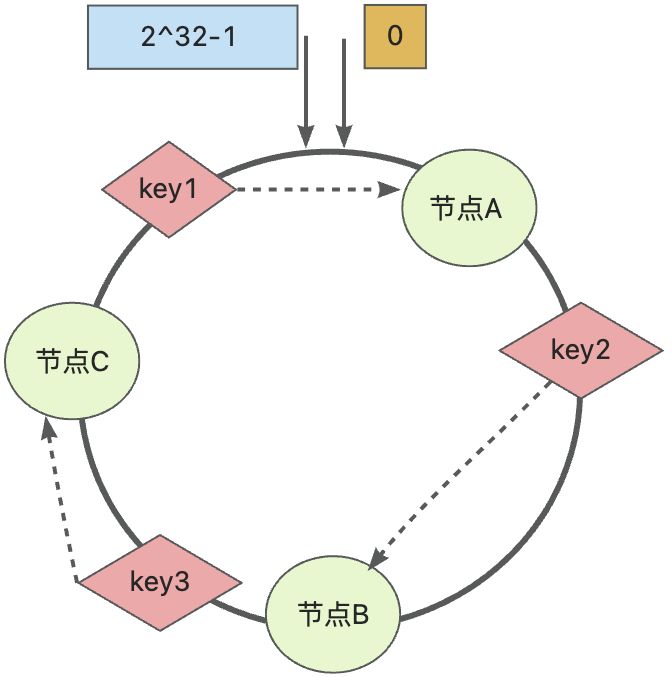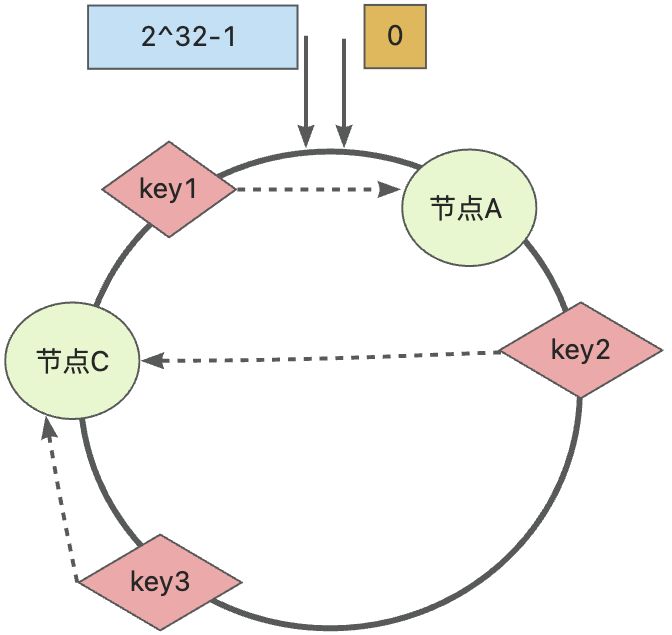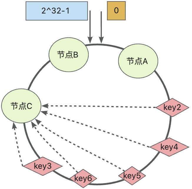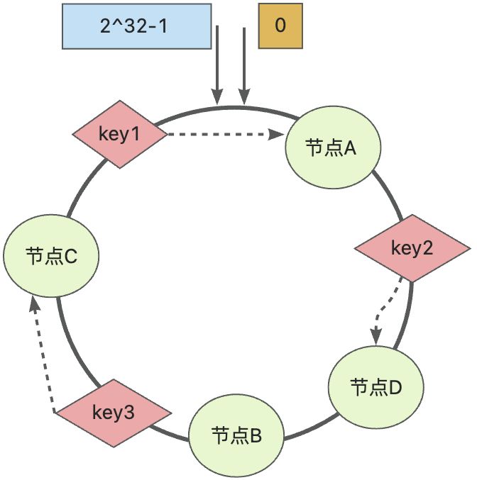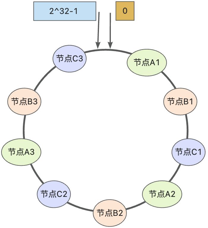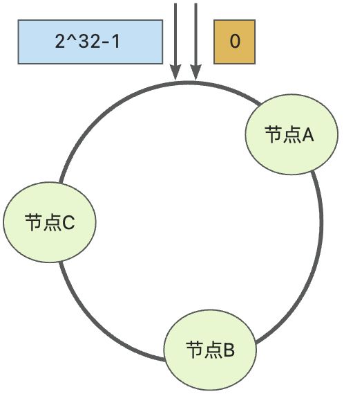 把2^32 抽象成一个环,即hash环:存储节点和数据都会经过hash函数映射到这个收尾相连的hash环中