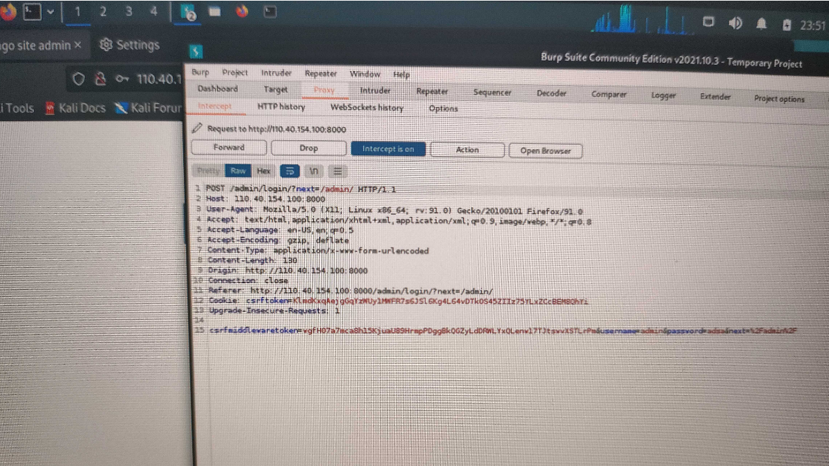 djanjo漏洞 1.输入http://110.40.154.100:8000/搭建靶场2.使用admin访问用户名3.用djanjo提供的函数处理用户的验证是否存在4.然后用burp进行抓包5.添加爆破字典,开始进行密码爆破6.看那个密码长度不一样那个就是密码。7.回到网站登录页面,添加组即可...