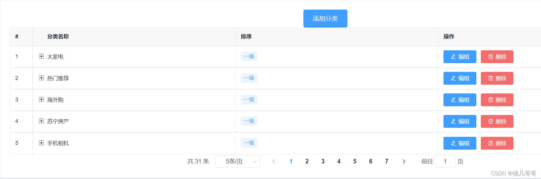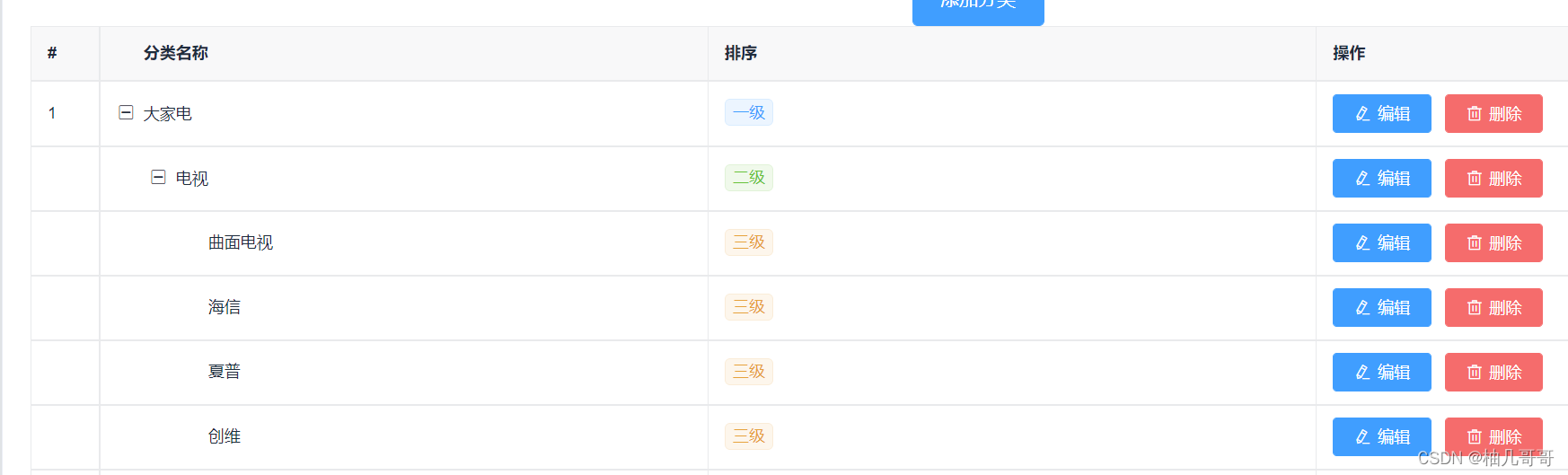 可实现 查看、编辑不同层级的商品分类名称以及父子级关系。