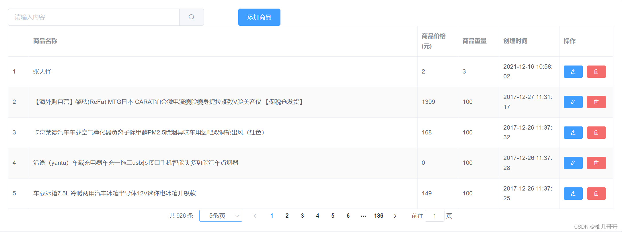 可实现商品的多条件搜索分页,以及对具体商品的添加、修改和删除操作