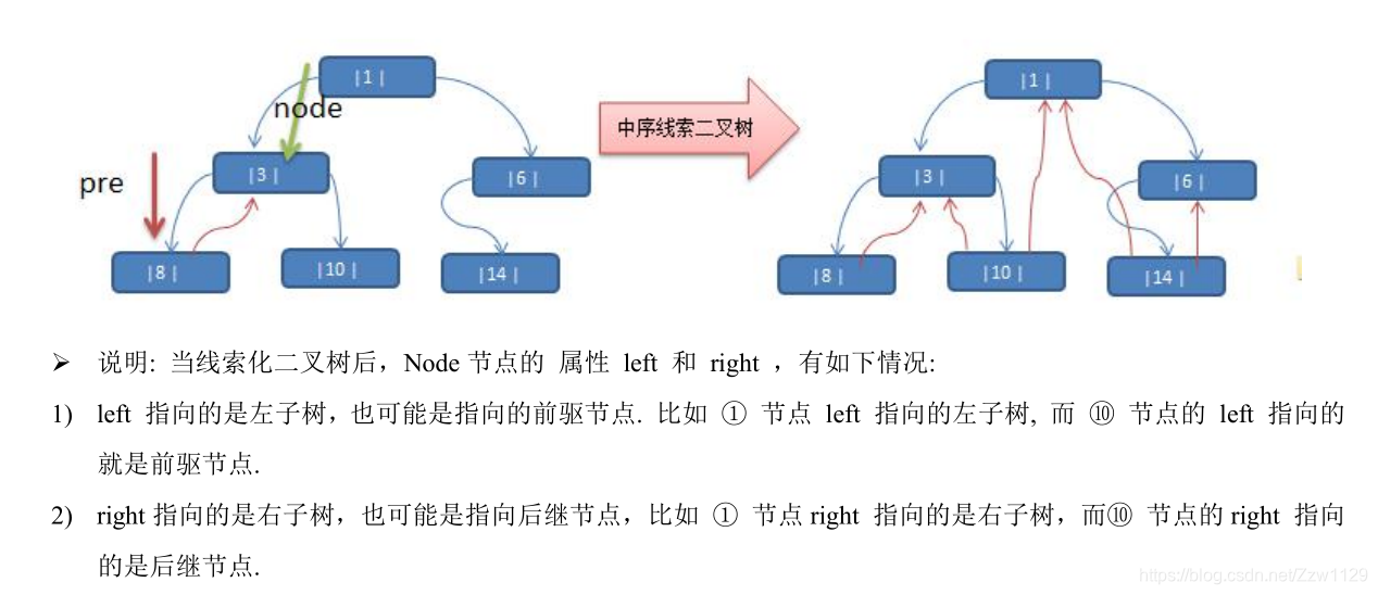 //1. 如果leftType == 0 表示指向的是左子树, 如果 1 则表示指向前驱结点