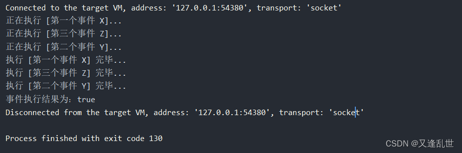 System.out.println("事件执行结果为:" + result);