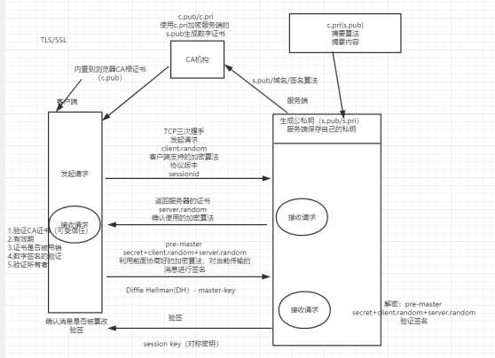 b) 之后所有的通信数据将由之前交互过程中生成的 pre master secret / client.random/server.random 通过算法得出 sessionKey,作为后续交互过程中的对称密钥