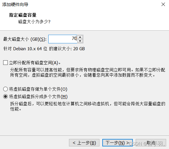 我这边定义磁盘大小为70GB 因为UOS系统最小磁盘需要60GB才可以安装系统