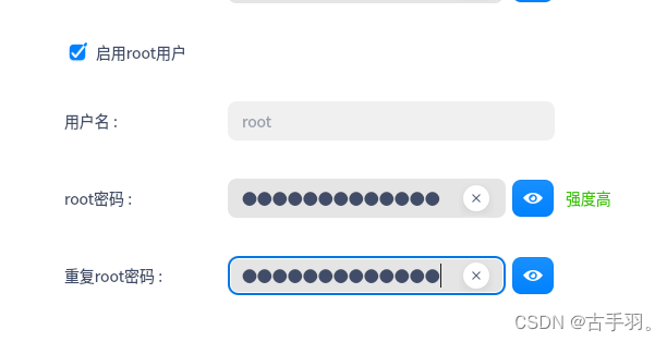 启用root用户(我们既可以使用上图中的账户密码登录也可以使用root用户和root密码登录)