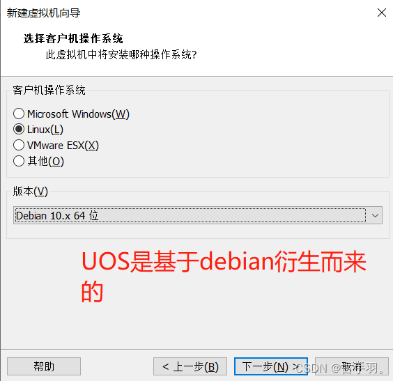 因为在VMware中暂时还没有属于UOS的版本,因为我们选择debian 10.x 64