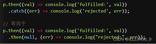 Promise 实例具有 then 方法,其第一个参数是 resolve 状态的回调函数,第二个参数是 reject 状态的回调函数,它们是可选的。