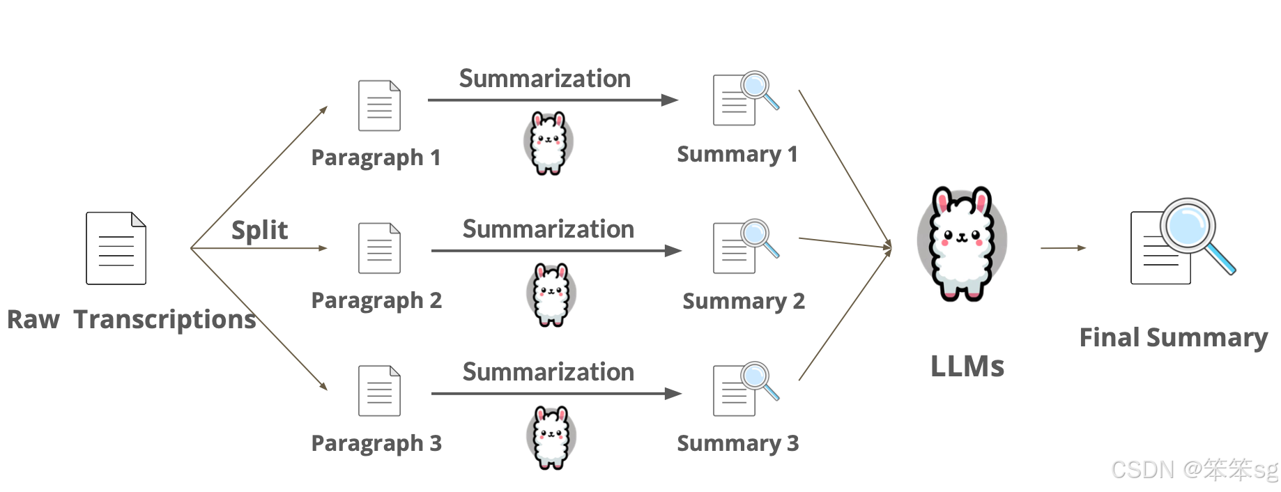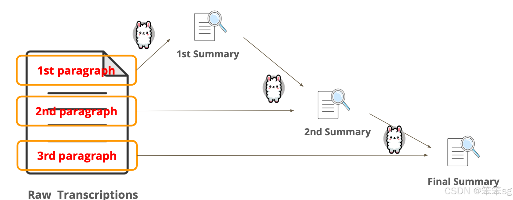 2)在分别获取每个小段落的摘要后,处理这些摘要以生成最终的摘要。