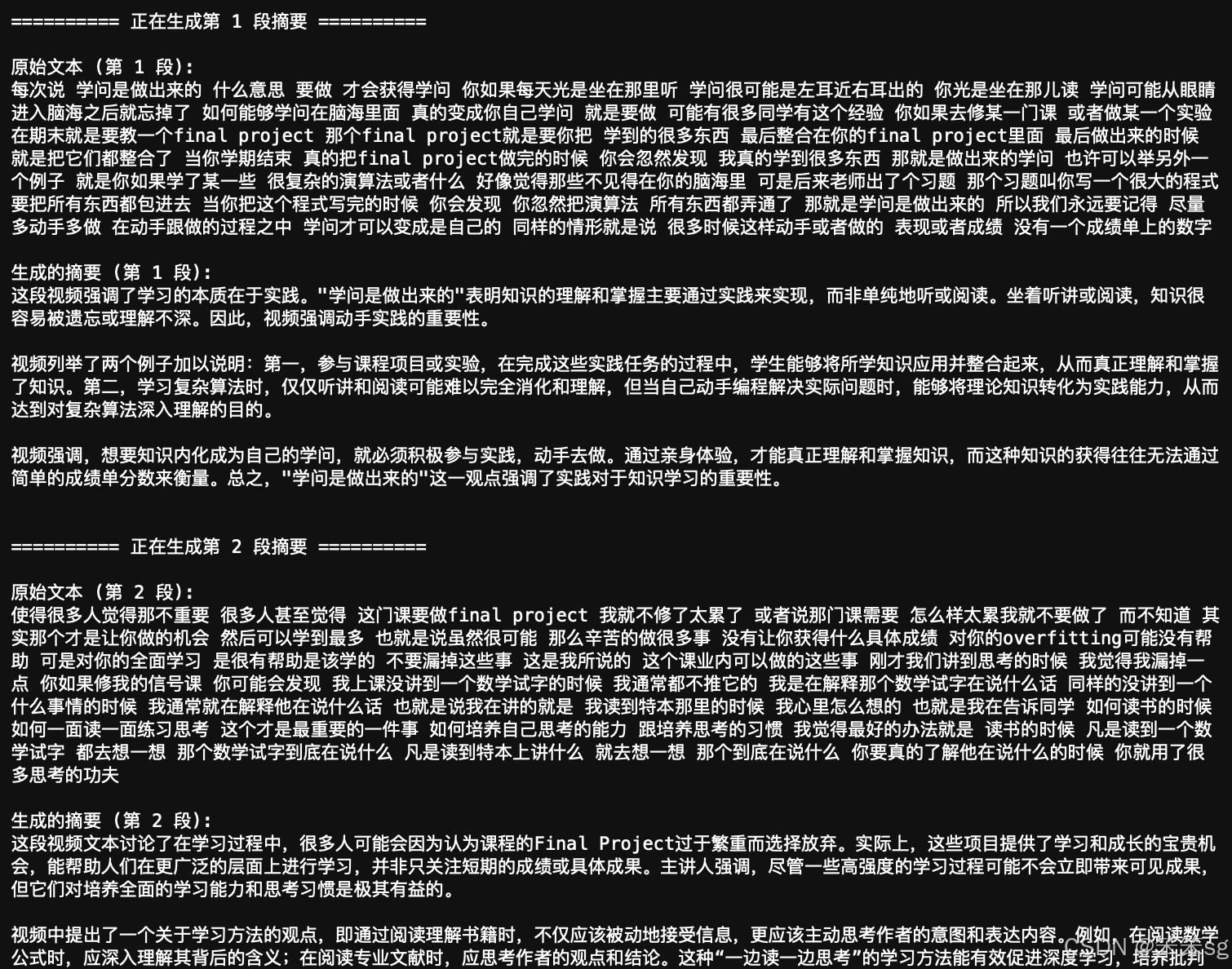print(f"\n========== 正在生成第 {index + 1} 段摘要 ==========\n")