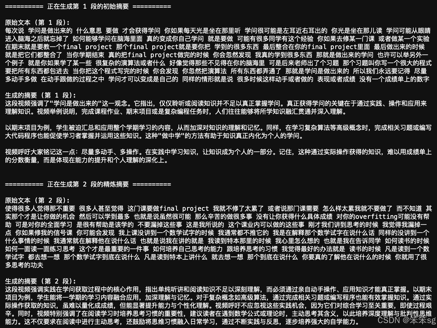 print(f"\n========== 正在生成第 {index + 1} 段的精炼摘要 ==========\n")