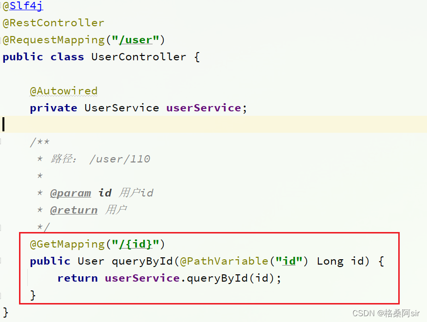 修改order-service服务中的queryOrderById方法,使用RestTemplate实例远程调用user-service的api: