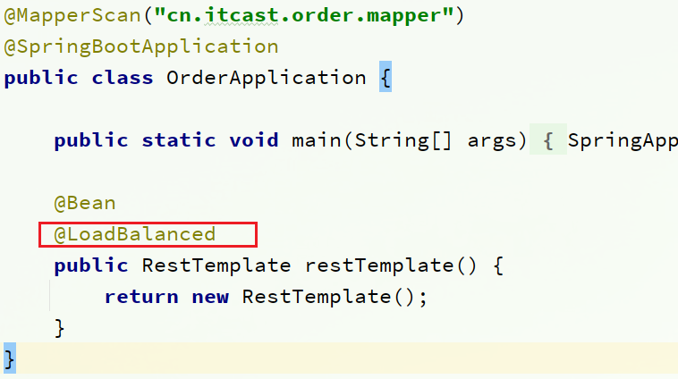 首先,因为要在order-service中调用其他服务的接口,所以我们需要在order-service服务中的OrderApplication启动类中,注册RestTemplate实例: