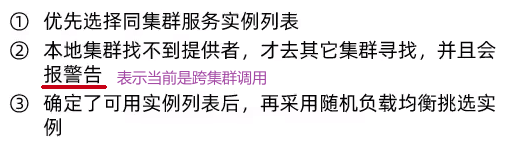 微服务互相访问时,应该尽可能访问同一集群的实例,因为本地访问速度更快。当本集群内不可用时,才访问其它集群。例如: