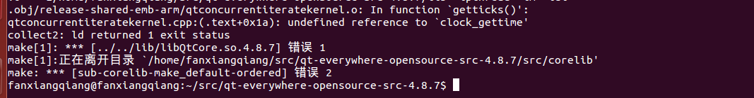 需要重新配置的话运行 make confclean 再运行之前的脚本,这里已经配置完成,我需要运行make 命令编译qt