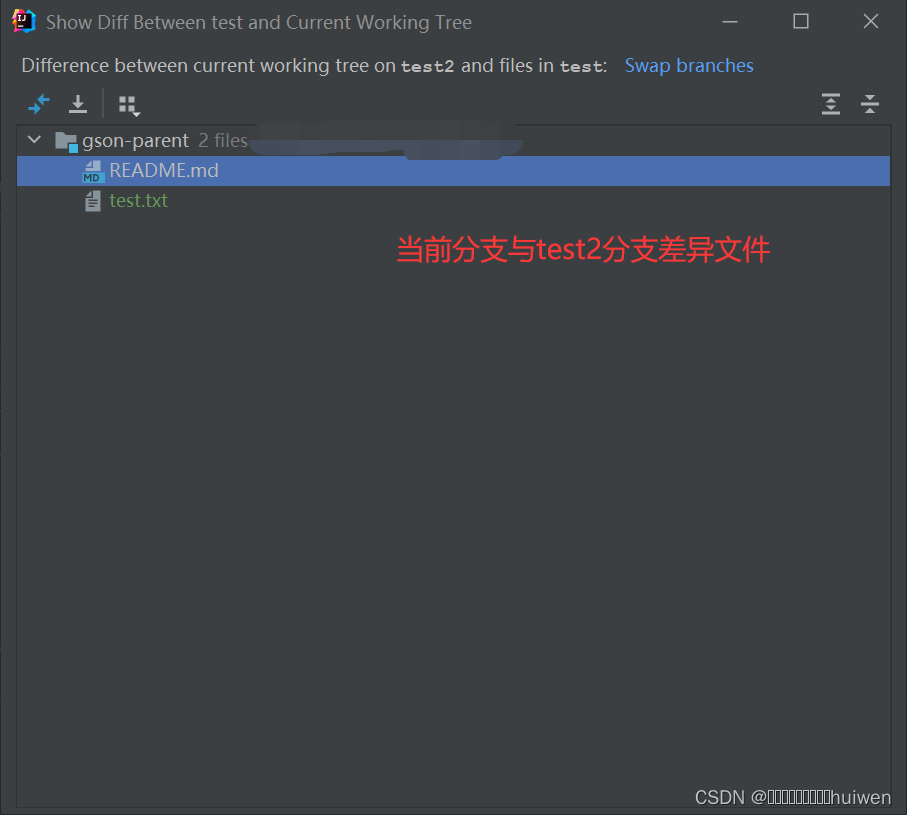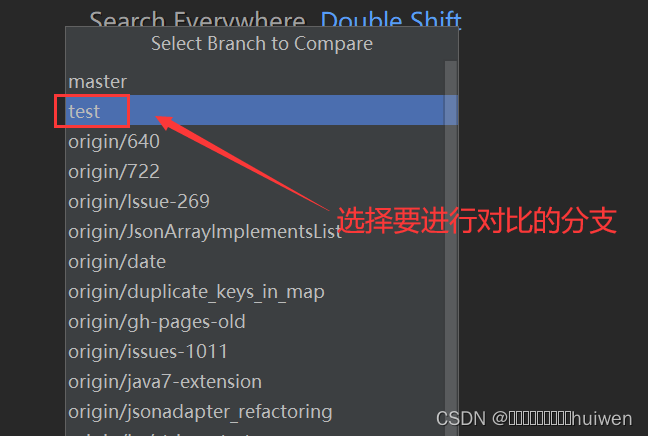 2.选择要进行文件差异对比的分支