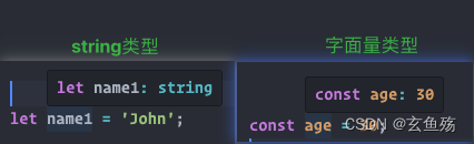 string类型是字符串类型,可以使用单引号或者双引号表示,同时也支持ES6的模板字符串来拼接变量和字符串