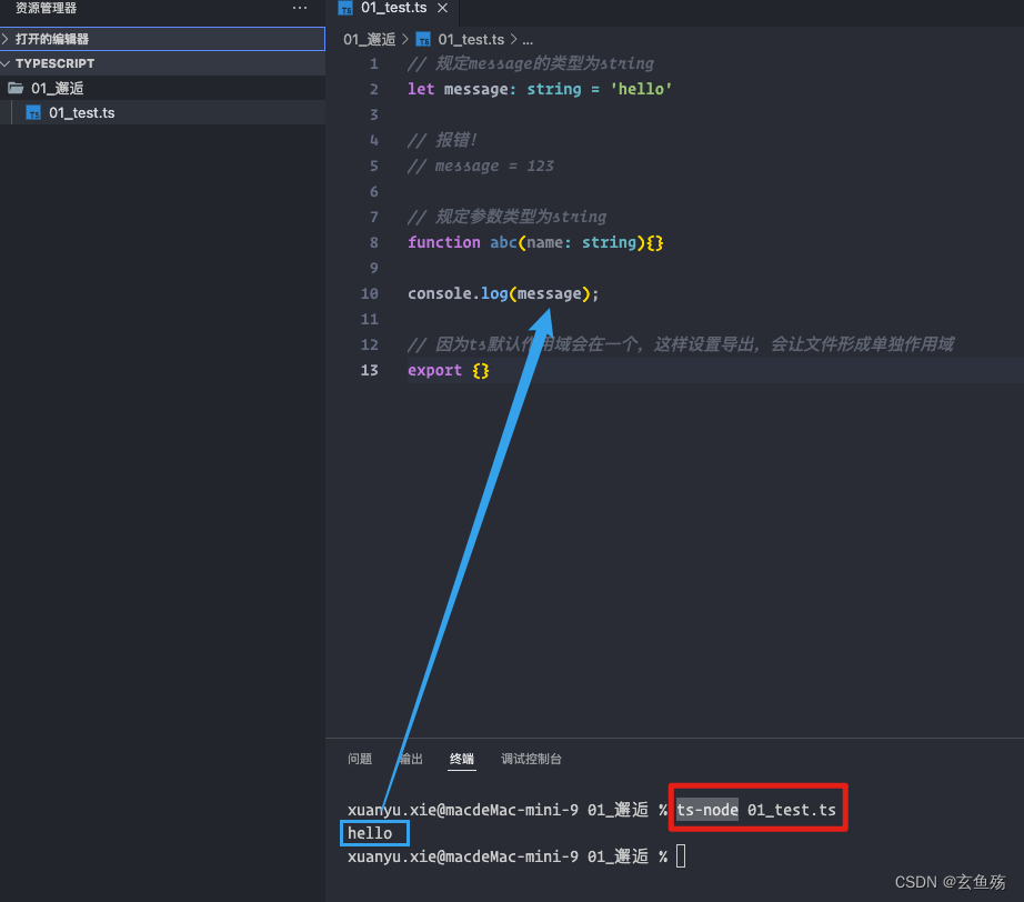声明了类型后TypeScript就会进行类型检测,声明的类型可以称之为类型注解
