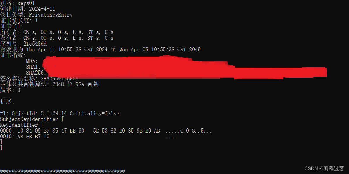 输入keytool -list -v -keystore mykey.keystore命令,mykey.keystore是刚才创建的签名