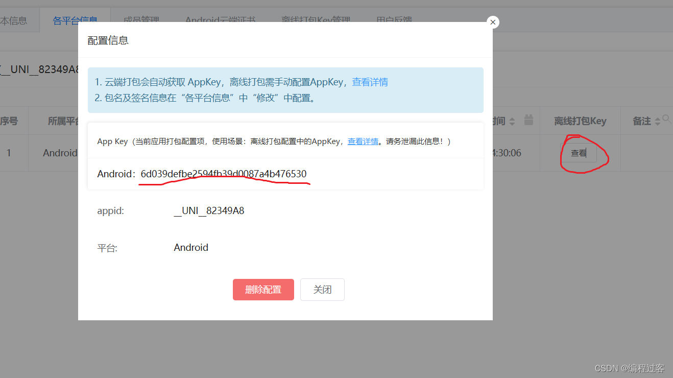 然后点击创建离线打包KEY: