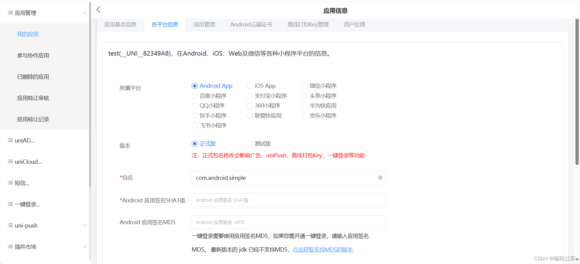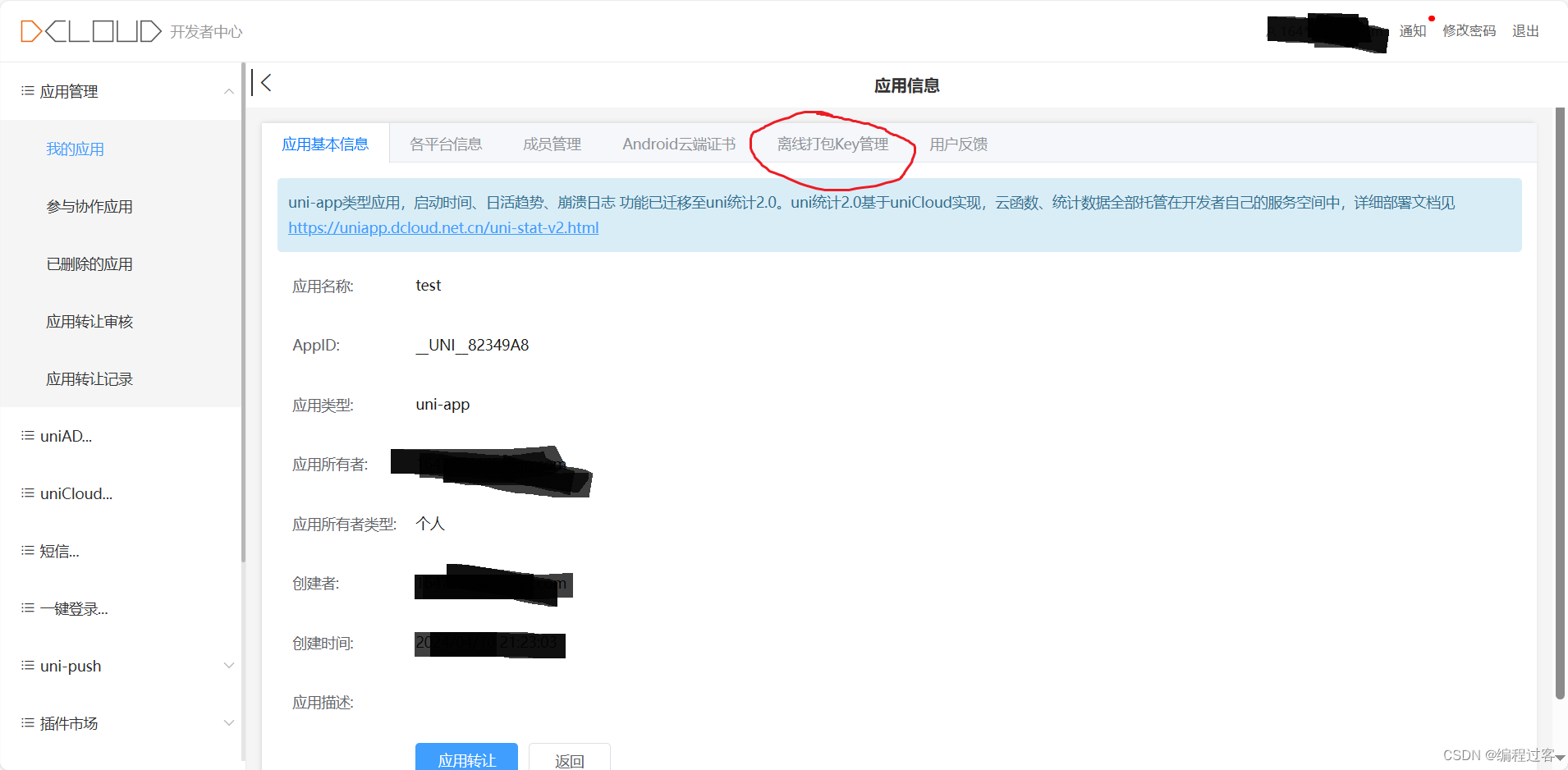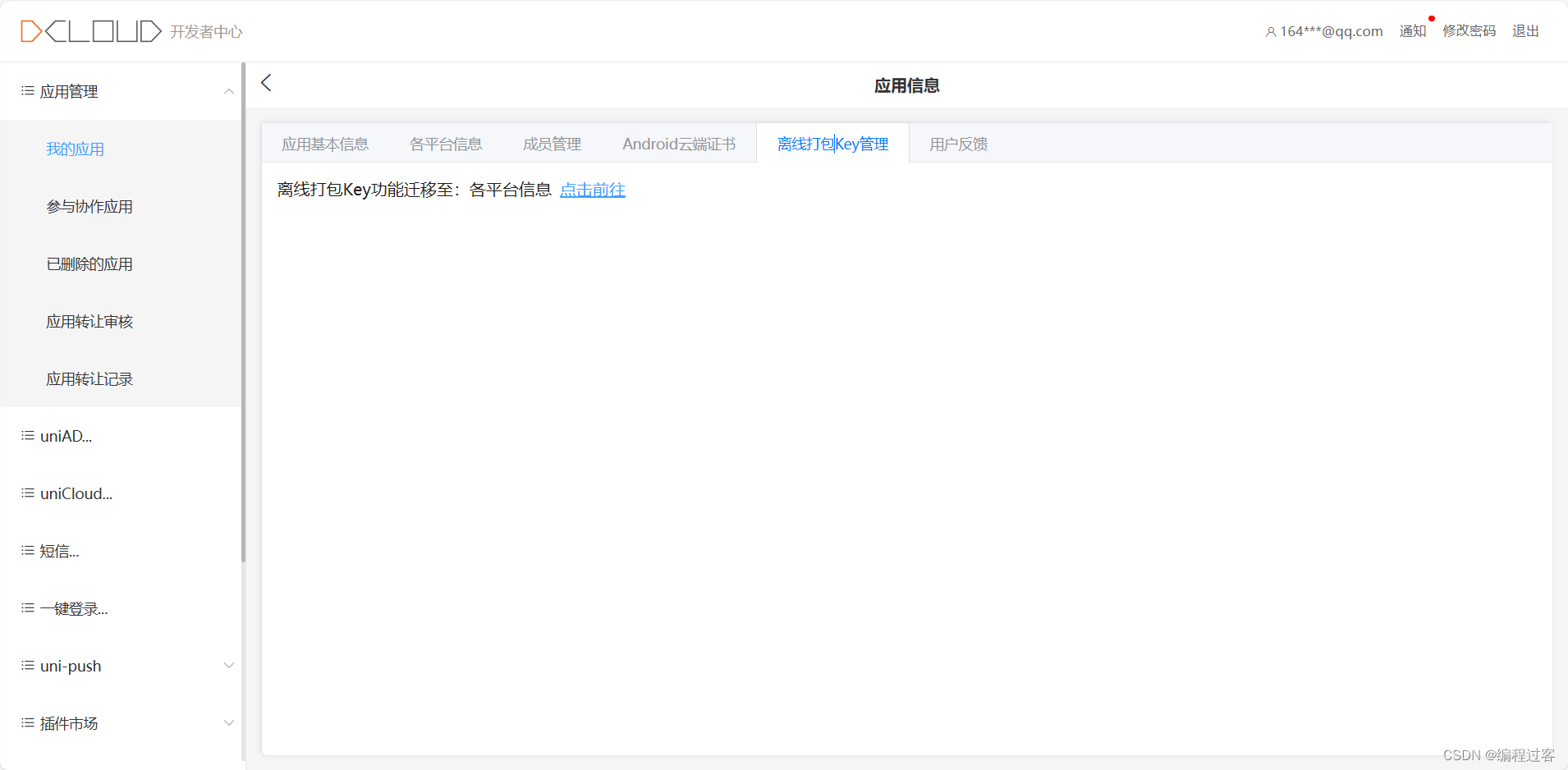 最后一步:登录Uniapp开发者中心获取签名,开发者中心的地址: