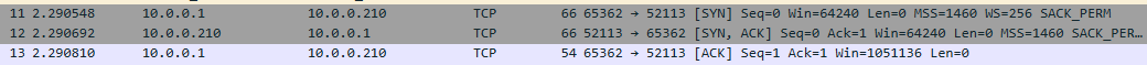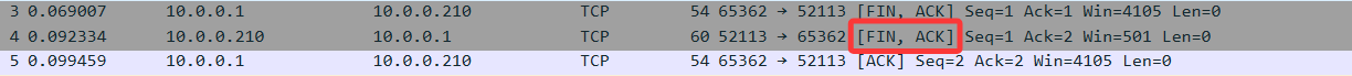 将Xshell断开,发现是三次(由于是我们主动关闭的,FIN和ACK合到一起了)