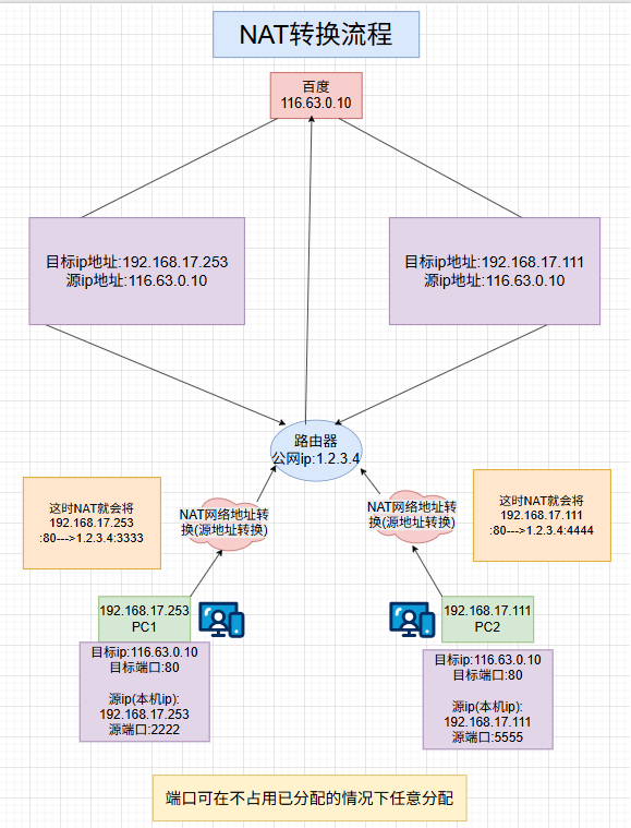 110.242.69.21---192.168.17.253:63592(实际是公网ip地址和百度地址连接)(现在看到的是障眼法)